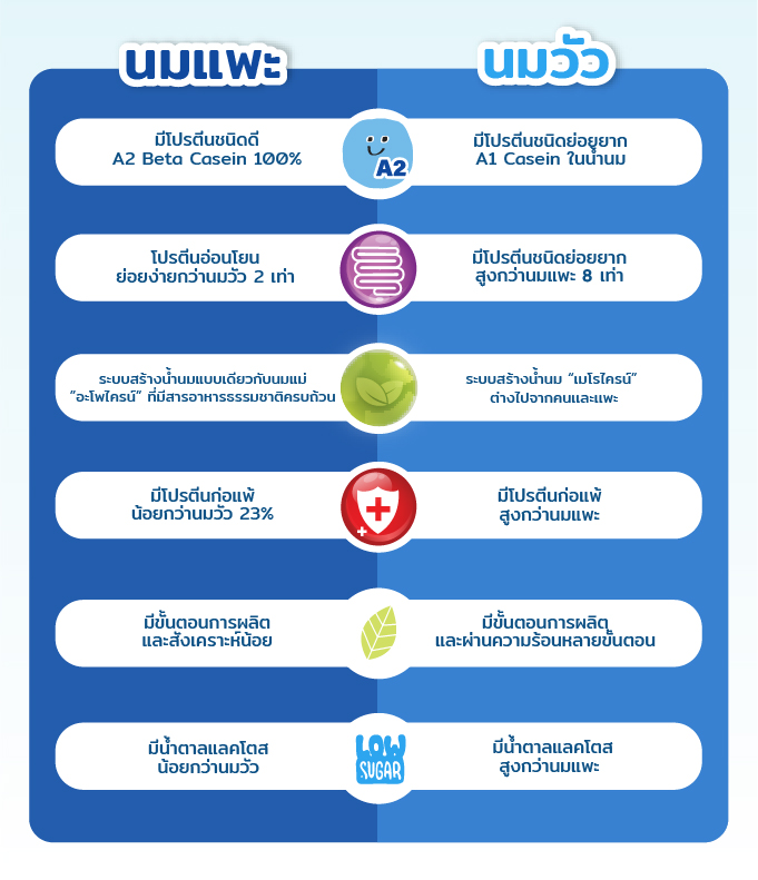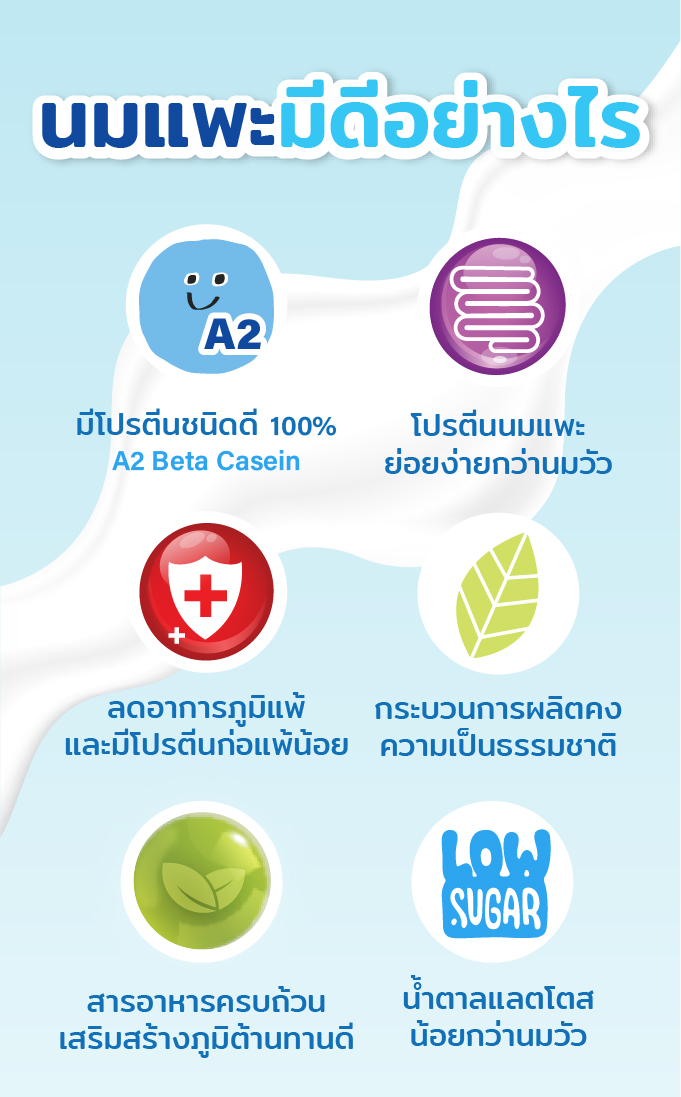 มีโปรตีนย่อยง่าย สูงกว่านมวัว อ่อนโยนต่อท้อง ดีต่อระบบย่อยอาหาร